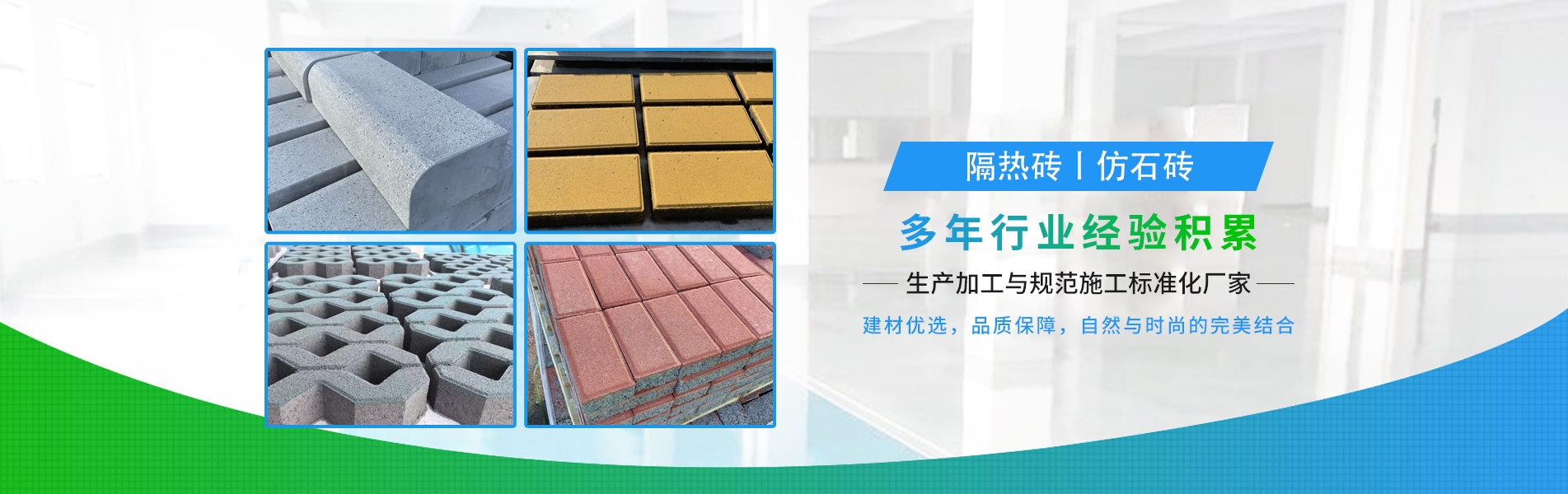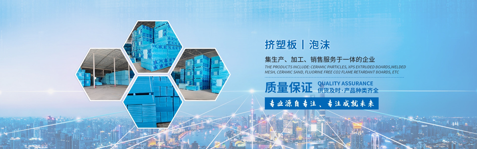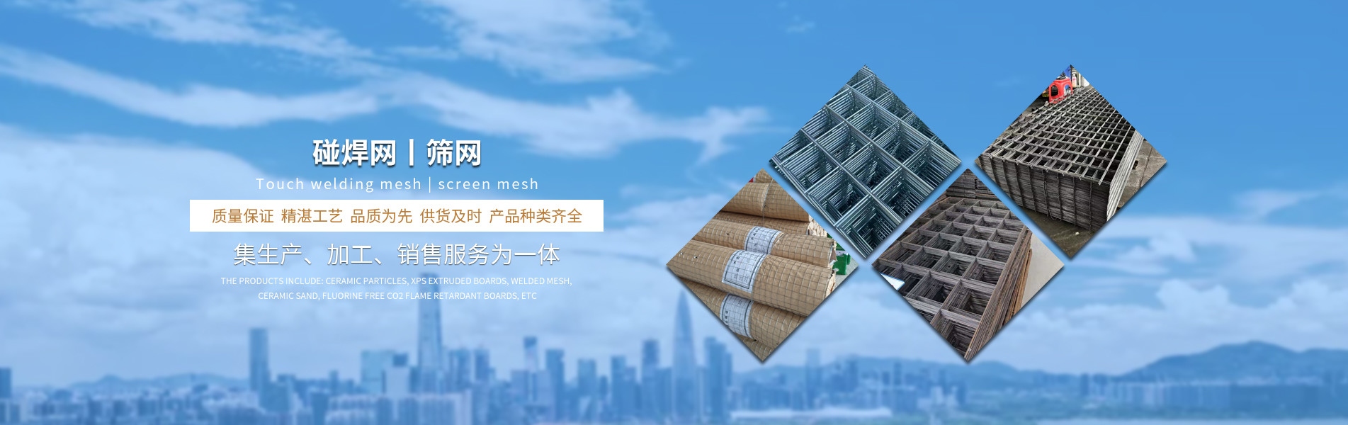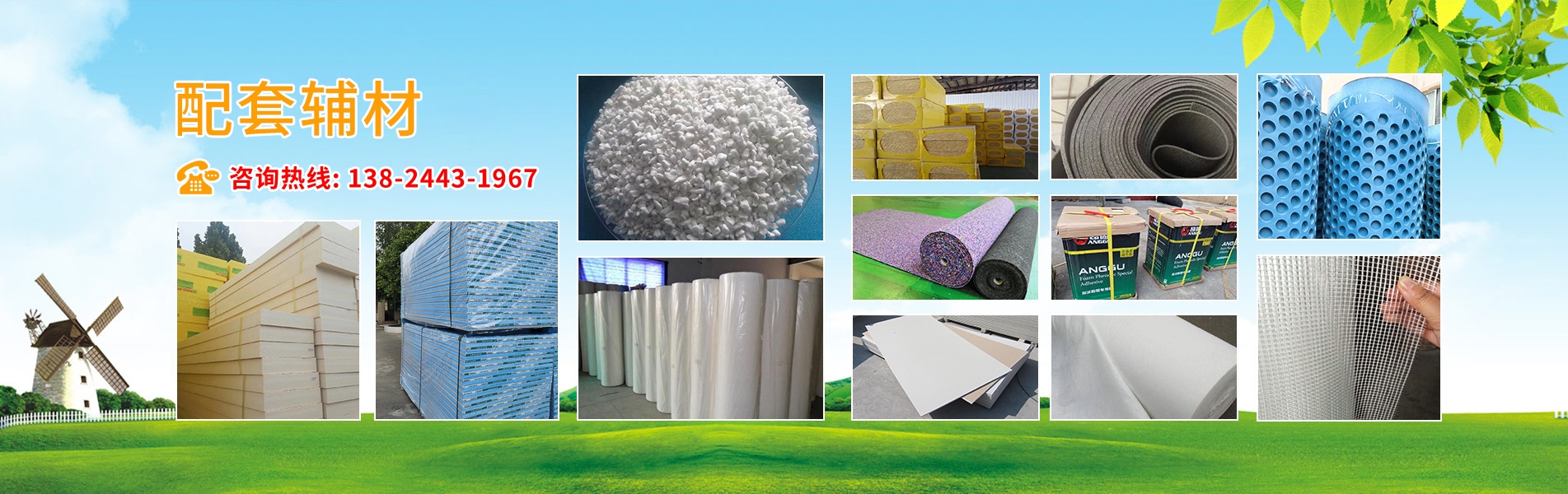 產(chǎn)品有:陶粒、XPS擠塑板、碰焊網(wǎng)、陶砂、無氟co2阻燃板、隔熱磚、鋼絲網(wǎng)、仿石磚、透水磚、泡沫板、擠塑復(fù)合板。配送材料有:土工布、擠塑板專用膠、塑料疏水板、巖棉板、玻璃棉氈、珍珠巖、聚酯無紡布、纖維網(wǎng)格布、聚乙烯隔音墊、聚氨酯板、泡沫玻璃等。